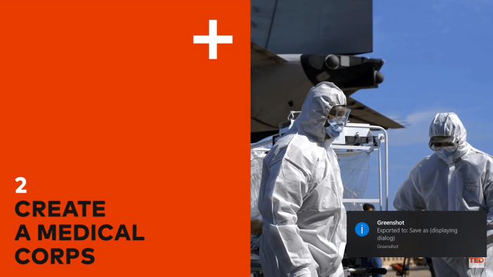And then we need to pair those medical people with the military, taking advantage of the military’s ability to move fast, do logistics and secure areas.