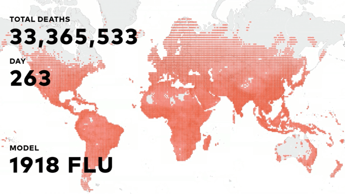 So here’s what would happen: It would spread throughout the world very, very quickly. And you can see over 30 million people died from that epidemic. So this is a serious problem.