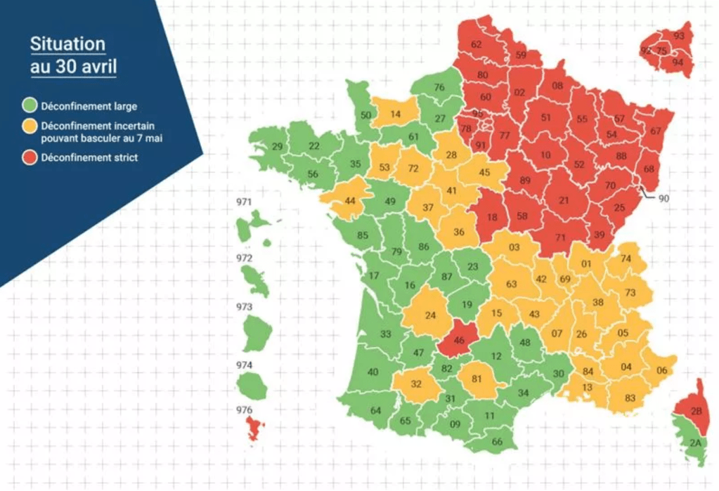France is trying to get organized to reopen gradually. Yesterday, a map has been published, assigning a color to each department depending on the number of cases, the number of available beds in hospitals and intensive care units, the general logistic preparedness to face the pandemic.